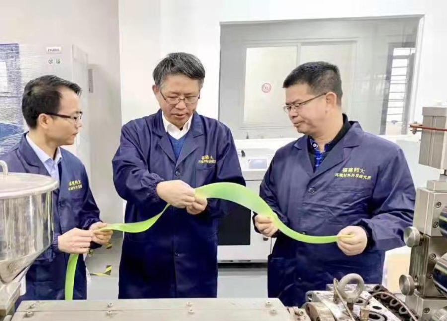在福建师大聚合物流变特性实验室里,陈庆华教授拿起一张刚“出炉”的柔软塑料膜,解释道:“就是添加不同功能助剂,使塑料增加导电性能,或增加强度,或能被降解。我们团队的使命是将大型石化公司生产的合成树脂、资源回收的可再生塑料,通过塑料改性技术实现其高质高值利用。很荣幸我的第一昵称是‘改性教授’。”