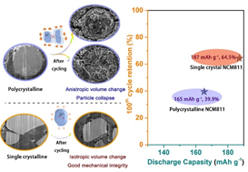在全固态电池中,正极材料的结构完整性对电池的循环稳定性和倍率性能起着不可忽视的作用。杨勇教授课题组通过原位电化学阻抗谱,聚焦离子束-扫描电子显微镜和固态核磁共振技术比较了常规多晶NCM811(LiNi0.8Co0.1Mn0.1O2),小尺寸多晶NCM811和单晶NCM811材料在Li10SnP2S12硫化物电解质基的全固态电池中的长循环性能和电化学-力学行为。实验结果表明颗粒结构完整的单晶NCM811材料可提供连续的Li+扩散通道,使其在不同的上限电压时均表现出高的比容量、稳定的充放电循环性能和出色的倍率性能,此外,1 wt%的LiNbO3包覆可以有效地抑制界面副反应并进一步提高单晶NCM811在全固态电池中的循环稳定性。