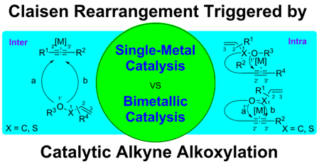 Claisen重排反应是由Rainer Ludwig Claisen在1912年发现,是第一个被发现的[3,3]-σ迁移重排。该反应不仅可高效和原子经济性地构建碳碳键,而且已被广泛应用于系列重要天然产物和生物活性分子的简洁合成。因此,该反应自发现以来一直备受研究关注,但是,如何在温和条件下有效地合成Claisen重排前体仍极具挑战。近年来,利用炔烃与烯丙基醚/烯丙基醇的烷氧化反应可在温和条件下高效产生Claisen重排前体、进而发生后续的[3,3]-重排反应可快速构建结构复杂的功能杂环化合物,因此,这类串联反应已成为该领域的一大研究热点。