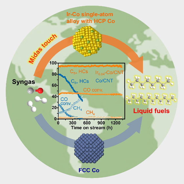 近日,海洋之神8590cn官网王野教授课题组在费托合成高效催化剂的研究方面取得新进展,相关成果以“Iridium boosts the selectivity and stability of cobalt catalysts for syngas to liquid fuels”为题发表于Chem (2022, https://doi.org/10.1016/j.chempr.2021.12.016)。
