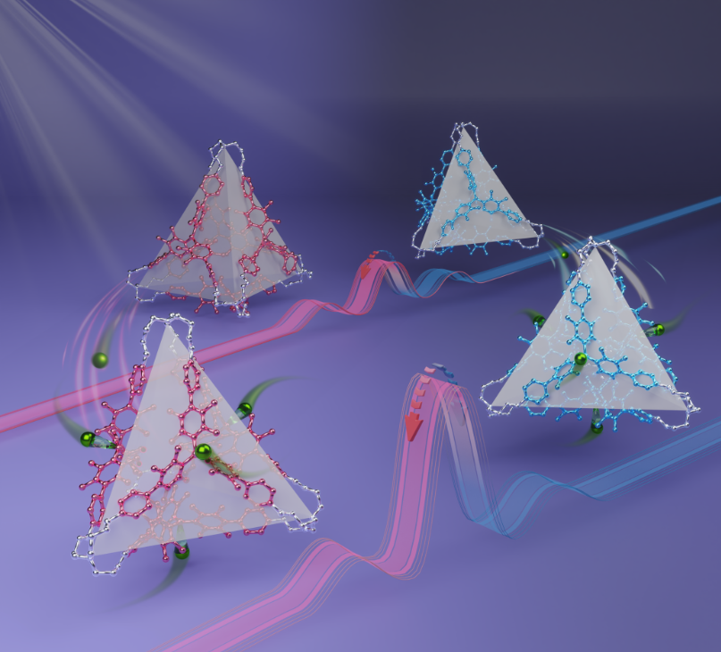 手性分子多面体被广泛应用于手性识别和分离、不对称催化、手性光学材料等方面。近年来,曹晓宇/苏纪豪/瞿航联合团队借鉴数学中的面方向性多面体 (Face-Rotating Polyhedra, FRP) 概念,发展了以三聚茚、氮杂三聚茚、四苯乙烯等为基元的一系列分子面方向性多面体组装体系,将组装基元的二维手性传递至分子多面体的三维手性,是一类全新的分子手性形式 (Nat. Commun., 2016, 7, 12469; J. Am. Chem. Soc., 2017, 139, 18142; Chem. Commun., 2018, 54, 4685; Chem. Sci., 2018, 9, 8814; J. Am. Chem. Soc., 2020, 142, 16223; Chem. Sci., 2021, 12, 11730)。然而,大多数手性分子多面体具有相当高的立体化学转化势垒,难以呈现出可控的动态手性行为。