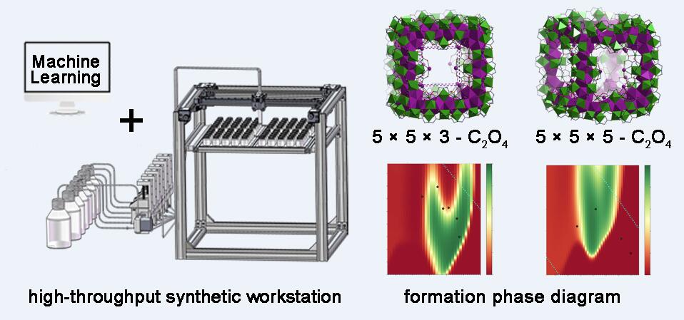 无机笼状化合物是合成化学领域的研究前沿和热点。然而,无机笼状化合物的可控制备极具挑战性,通常需要大量试错进行探索。近年来,孔祥建教授团队在稀土-过渡金属体系中发现了一系列具有笼状框架结构的高核稀土-过渡金属团簇。这些高核团簇呈现出n × m × l平行六面体特征(Matter, 2020, 3, 1334),并有望形成系列具有规则尺寸的无机分子笼家族。但该体系的合成参数与结构呈现出难以理解的复杂关系,现阶段的人工合成效率难以阐明合成参数与结构之间的关系。