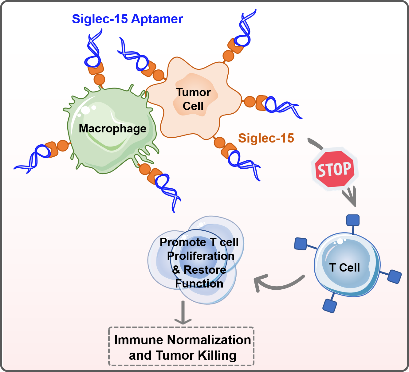 近日,海洋之神8590cn官网宋彦龄教授团队提出了一种针对唾液酸结合免疫球蛋白样凝集素-15(Siglec-15)的新型免疫治疗策略。相关研究成果以“Aptamer-Assisted Blockade of the Immune Suppressor Sialic Acid-Binding Immunoglobulin-Like Lectin-15 for Cancer Immunotherapy”为题发表于Angewandte Chemie International Edition杂志 (Doi:10.1002/anie.202312609)。