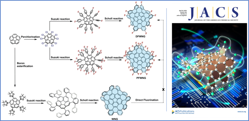 近日,海洋之神8590cn官网谢素原院士课题组张前炎教授在石墨烯边缘氟化研究方面取得新进展,相关成果以“Decafluorinated and Perfluorinated Warped Nanographenes: Synthesis, Structural Analysis, and Properties”为题发表于J. Am. Chem. Soc. ,并被当期选为内封面文章。